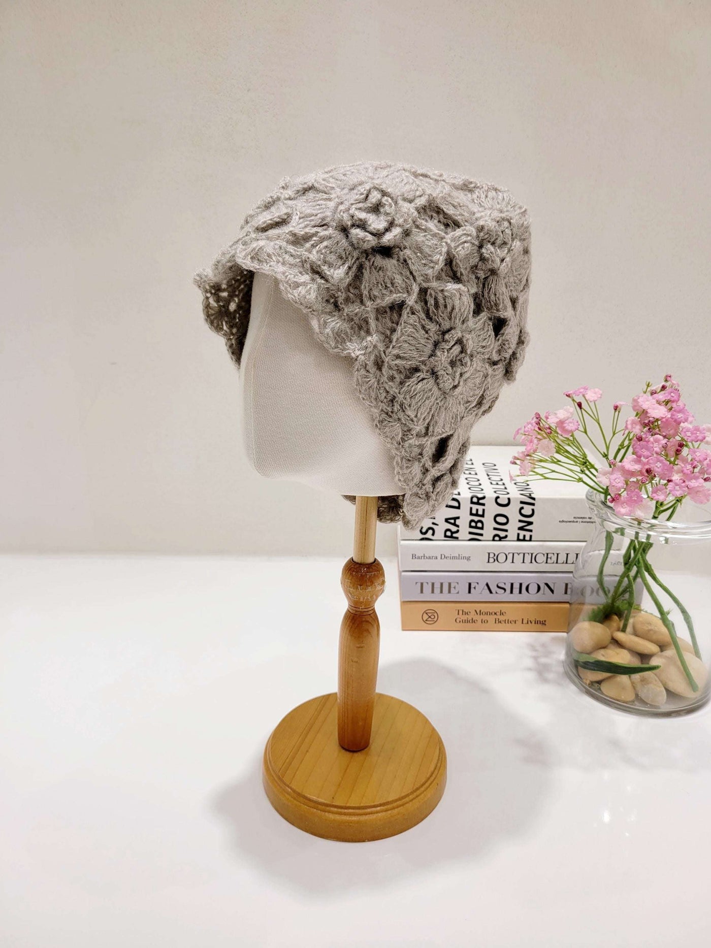 Crocheted Sharon Beanie with Floral Pattern and Soft Textured Design